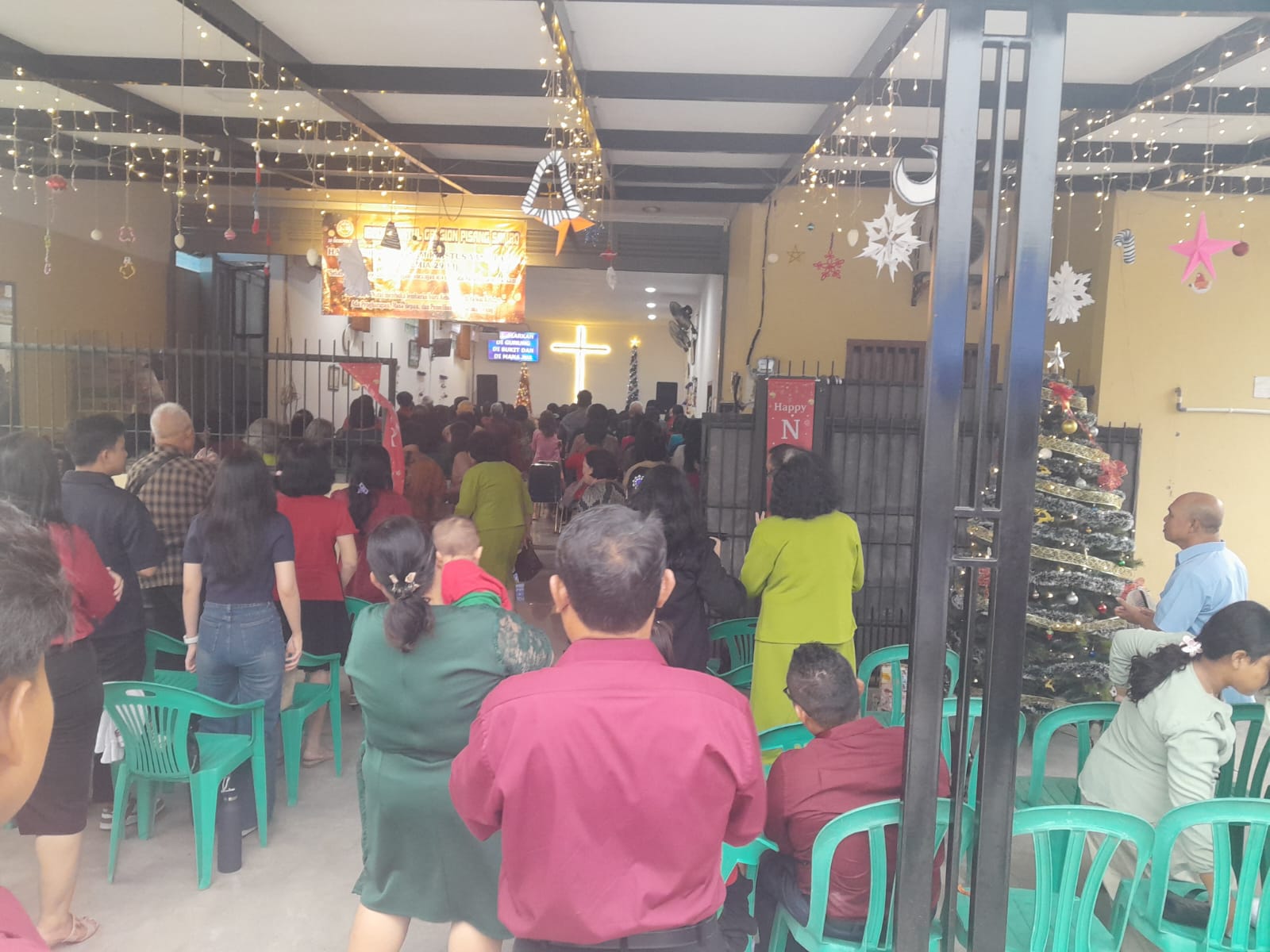 Bekasi Pebayuran – Perayaan Hari Raya Natal umat Kristiani dengan tema “Harapan Baru Dalam Kristus Yang Agung” yang digelar di Gereja Bethel Indonesia (GBI) Sion, Kampung Pisang Sambo RT 16/RW 06, Desa Karangharja, Kecamatan Pebayuran, Kabupaten Bekasi, pada Minggu (28/12/2025).
