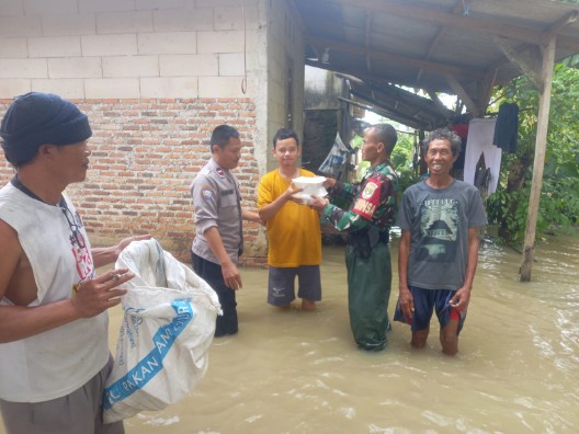 Pebayuran, – Babinsa Koramil 11/Pebayuran bersama SPPG Kertasari dan Kepolisian setempat turun langsung ke lokasi banjir akibat luapan Kali Kiwing di Desa Bantarsari, Kecamatan Pebayuran, Jumat (23/1/2026).