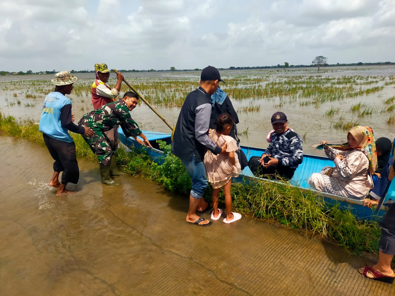 Untuk mengantisipasi kondisi darurat, Koramil 11/Pebayuran telah menyiagakan perahu evakuasi yang dapat digunakan untuk 8 hingga 10 orang.