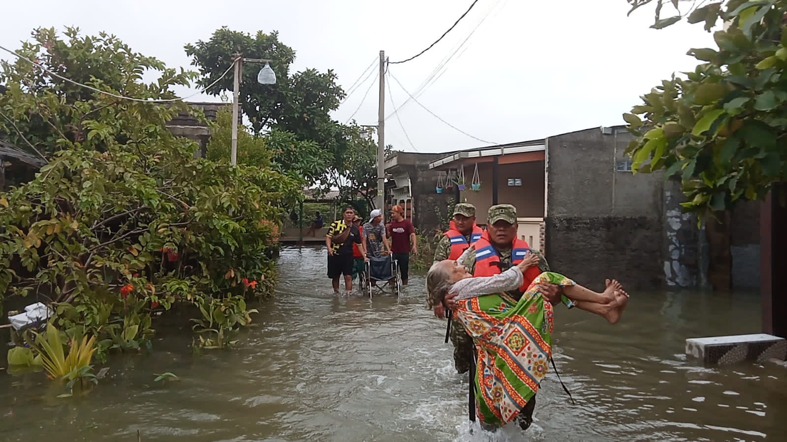 Babinsa Desa Buni Bakti yang dipimpin Peltu P. Hutasoit bersama Serka Nasan, dibantu personel Komcad Serda Amrizal dan Serda Kusmayadi, menggunakan satu unit perahu karet untuk mengevakuasi warga yang membutuhkan pertolongan segera, khususnya lansia dan warga yang sedang sakit.