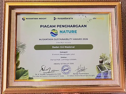 Jakarta – Badan Gizi Nasional (BGN) menerima Nusantara Sustainability Award 2026 dalam acara Nature yang diselenggarakan Nusantara TV. Penghargaan ini diberikan pada kategori “Ekonomi Berdampak Lokal” sektor Pemerintah, Lembaga, dan BUMN.
